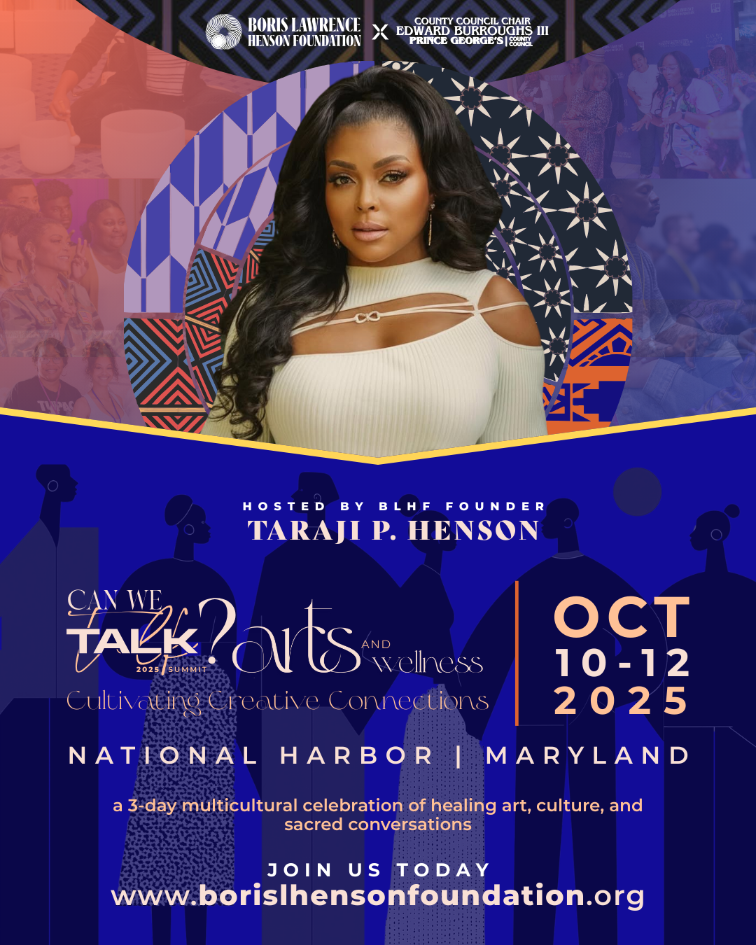 PRINCE GEORGES, COUNTY, MD, UNITED STATES, October 9, 2025 /EINPresswire.com/ -- The Boris Lawrence Henson Foundation (BLHF), founded by Academy Award–nominated actress, producer, author, entrepreneur, and mental health advocate Taraji P. Henson in partnership with Prince George’s County Council Chair Edward P. Burroughs III, proudly announces the return of its transformative 5th Annual Can We Talk? (CWT) Multicultural Arts & Wellness Summit, taking place October 10–12, 2025 at National Harbor. — Taraji P. Henson, Founder of BLHF